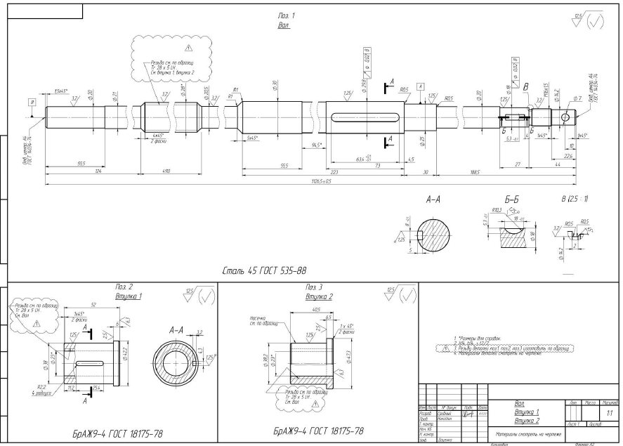 Винт с гайкой поперечного перемещения суппорта 1М63.41.154 (Lобщ=1154)